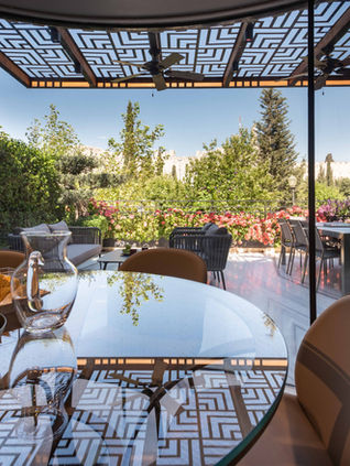 Overlooking the Old City walls, this elegant Jerusalem home transforms its narrow, vertical footprint into a continuous, open public space. Expansive glass facades with minimalist detailing blur the line between interior and exterior, framing the historic panorama. A striking book-matched marble floor flows seamlessly from inside out, its natural veins defining the color palette and guiding the design. Every detail—including the transparent glass dining table—is conceived to showcase the floor and the view, creating a home that is modern, harmonious, and deeply connected to its surroundings.